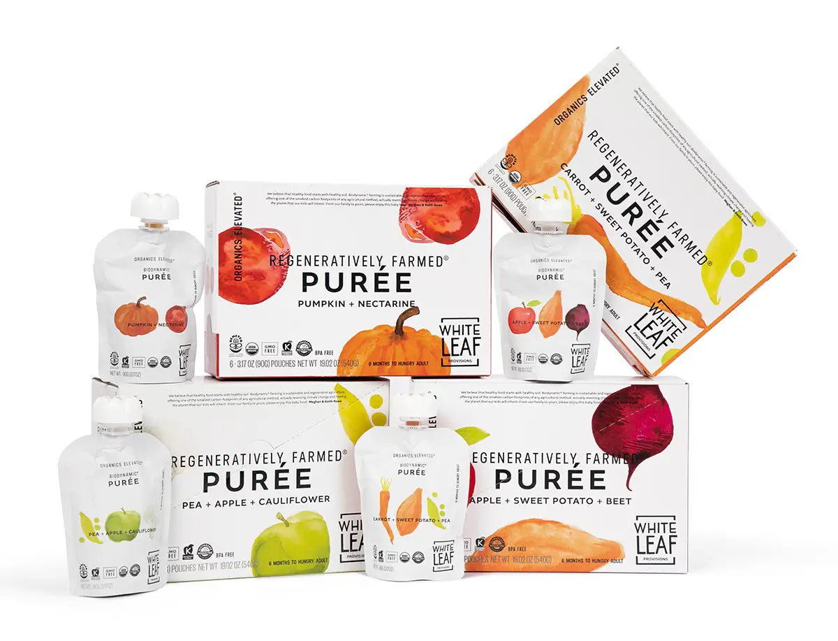 Start here to regenerate your pantry. Our purees and apple sauces are not only certified Organic and GMO-free, they are also regeneratively farmed® and biodynamic®, containing nothing but fruits, vegetables and grains, grown in healthy, nutrient-dense soil.